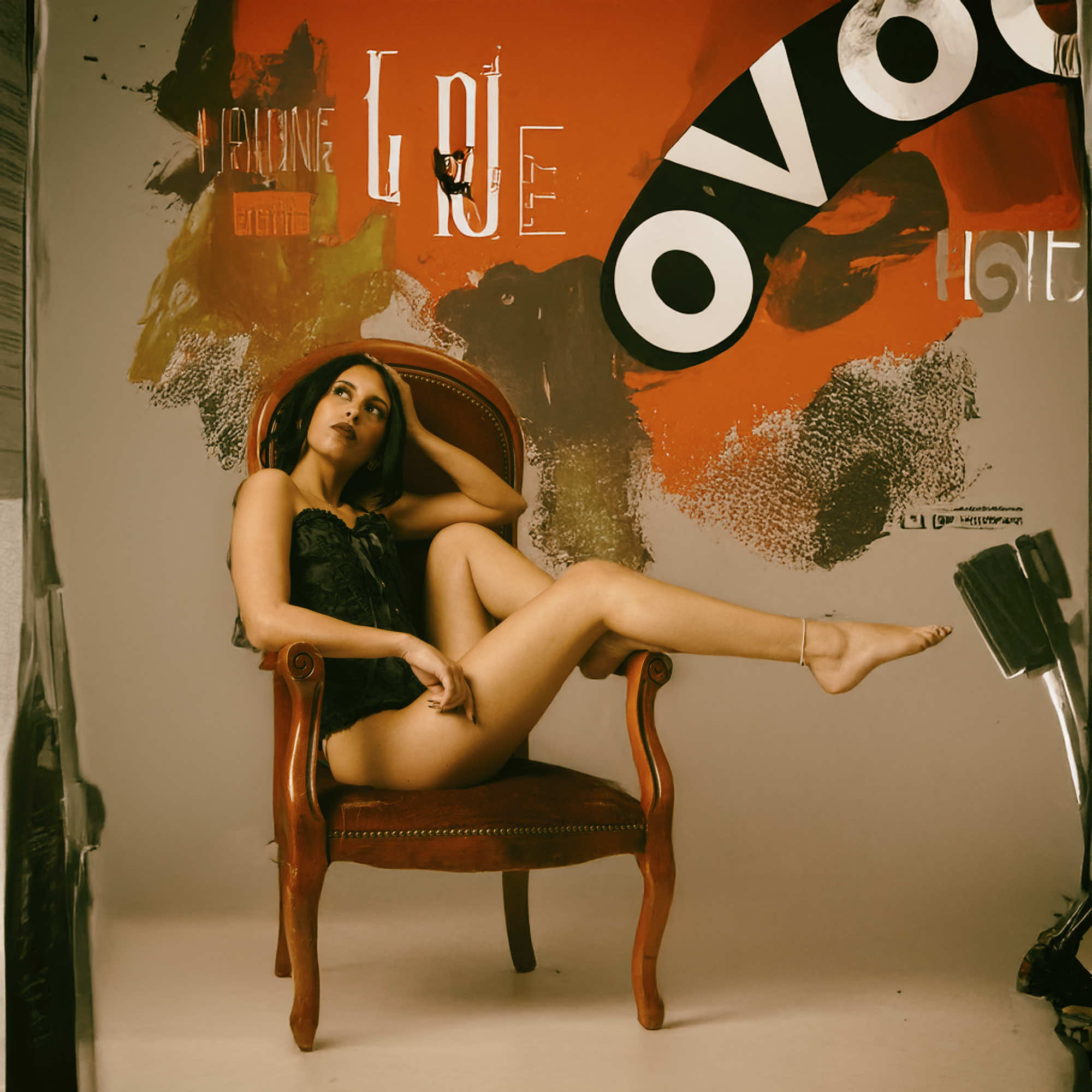 Esprit pin-up, uannée 60′ / couverture de vynils, avec les couleurs des années 60 70 et des poses un peu forcées